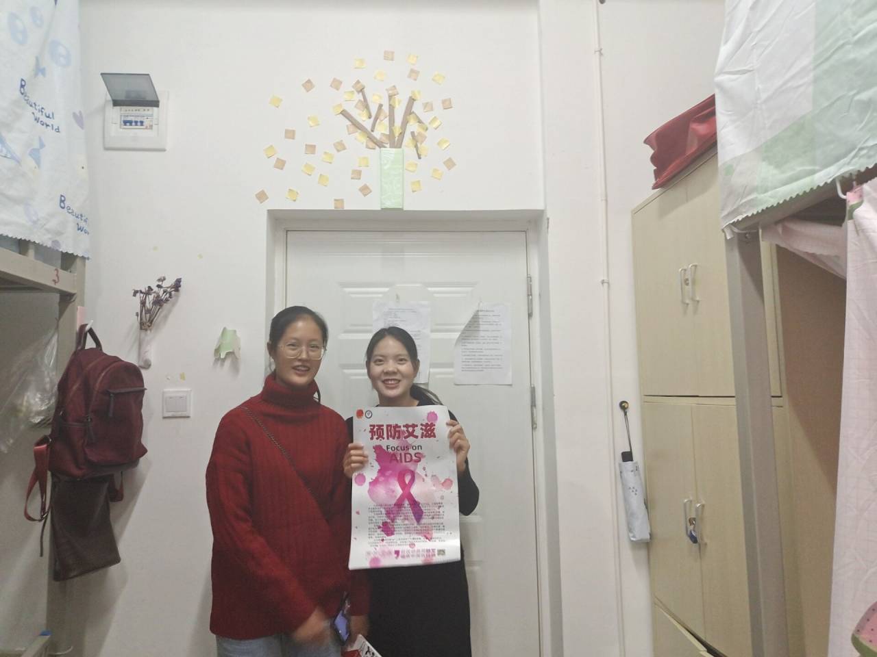 11月21日在澄明苑宿舍,25个z6mg人生就是博官网的志愿者开展了毒品防艾宣讲进宿舍活动。毒品和艾滋病已成为我们人人熟知的词汇,艾滋病像魔鬼一样,在世界各地穿梭,听到这一词,不禁令人惊骇。但这又是人类无法逃避的现实,因此我们需要面对现实,关注艾滋,了解艾滋的危害性和预防艾滋病的知识,做好防艾措施。该活动向同学们普及了毒品和预防艾滋病的知识,增进员工对毒品和艾滋病的认识,从而提高防御毒品和艾滋病意识,使大家懂得如何更好地保护自己和周围的人们,远离毒品和艾滋病,共建和谐美好的校园环境。活动同时也使大家提高对艾滋病病人进行关怀的意识,减少了对艾滋病患者的歧视,使同学们正确认识艾滋病,为构建和谐社会而努力。
