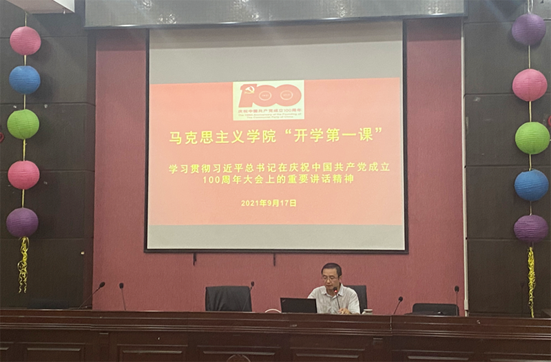 王宁书记带大家回顾了中国共产党走过的100年奋斗路,重点从百年启航、百年历程、百年法宝等方面详细阐述了全面建成小康社会的历史性成就、党团结带领人民不懈奋斗的光辉历程和伟大成就、伟大建党精神的深刻内涵和时代价值,以史为鉴、开创未来的根本要求以及习近平总书记代表党中央向青年提出的殷切期望。希望同学们要积极响应习近平总书记的号召,向坚持真理、坚守理想,不怕牺牲、英勇斗争,对党忠诚、不负人民的中国共产党人学习,用伟大建党精神滋养自己、激励自己,增强做中国人的志气、骨气、底气,不负时代,不负韶华,不负党和人民的殷切期望!