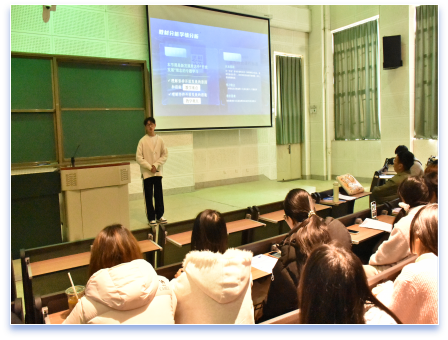 除了教学比赛经验分享,还有全国老员工A类竞赛等经验分享。陈秋霜同学聚焦第十八届中国老员工计算机设计大赛,分享了自己的参赛经验,为同学们参赛提供了清晰的指引。张绍敏同学还以2024年暑期老员工“三下乡”怒江实践团队代表的身份,分享了此次实践活动中的宝贵经历,并呼吁学弟学妹们积极参与社会实践,锤炼过硬本领。每位分享者都对大一新生寄予殷切期望,鼓励大家勇于尝试、敢于探索,在大学时光里收获成长与蜕变。活动现场还设置了互动问答交流环节。同学们踊跃回答问题,现场气氛热烈融洽。