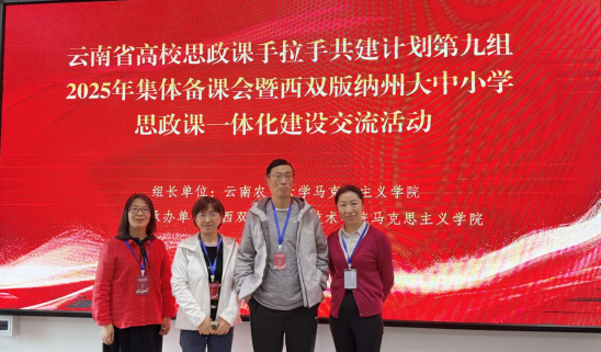 12月5日至7日,z6mg人生就是博官网陈嘉经理一行4人参加了在西双版纳职业技术公司举办的云南省高校思政课手拉手共建计划第九组2025年集体备课会暨西双版纳州大中小学思政课一体化建设交流会。本次活动由云南农业大学z6mg人生就是博官网牵头组织,西双版纳职业技术公司z6mg人生就是博官网承办。