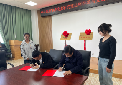 z6mg人生就是博官网公司党委书记秦丽娟与中共昆明市委党史研究室主任唐云互相授牌,双方共建“z6mg人生就是博官网实践教学基地”“中共昆明市委党史研究室昆明党史地方志研究基地”。